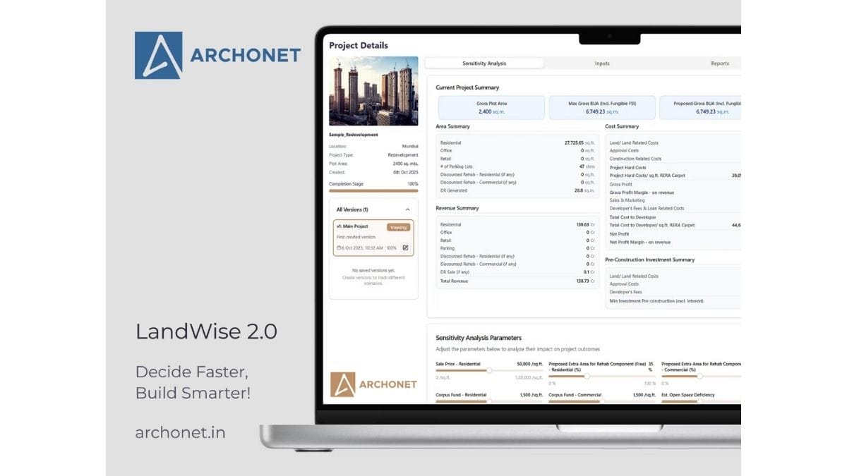 Mumbai (Maharashtra) [India], November 26: In India’s fast-evolving and competitively growing real estate sector, where every investment carries both opportunity and huge risk, clarity in decision-making has become paramount and the ultimate differentiator. Archonet (archonet.in), a pioneering company in real estate technology, is redefining how developers, architects and investors make confident, risk‑free decisions with its flagship platforms — LandWise and FinWise. The launch of LandWise 2.0 marks a major milestone, strengthening Archonet’s role as the industry’s real estate decision engine — moving beyond traditional feasibility tools to deliver true decision intelligence.