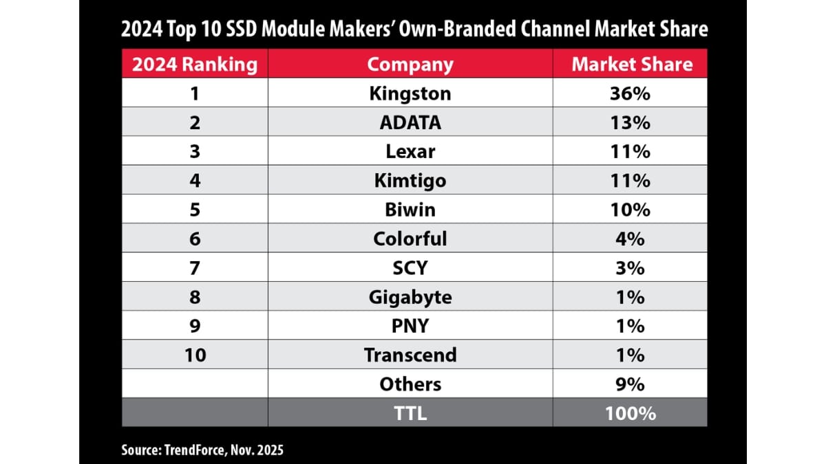 Kingston Leads Channel SSD Shipments in 2024