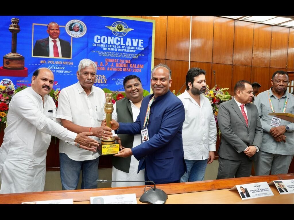 New Delhi (India), July 31:  Poland Moosa, the visionary founder of Fragrance World, was honoured with the King of Perfume title at the esteemed APJ Abdul Kalam Award 2024 at a ceremony in New Delhi. The award ceremony was organized, at the Delhi Vidhansabha, Old Secretariat, New Delhi.