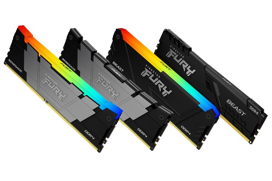 Kingston FURY Renegade DDR4 – Delivers amazing speeds up to 5333MT/s*1, making it the ultimate choice for power users. The bold two-tone black heat spreaders are on double duty as they not only enhance the look of your build but also manages heat while you’re deep at work or play to ensure optimal performance. For those seeking an extra dose of excitement, Kingston FURY Renegade DDR4 RGB2 boasts a stylish two-tone black heat spreader illuminated by 10 LEDs to create dynamic RGB lighting effects kept in lock-step by Kingston FURY’s patented Infrared Sync Technology™. Beyond its appearance it doesn’t compromise on functionality, offering speeds up to 4600MT/s allowing users to boost frame rates, improve workflow, and edit game play in a flash.